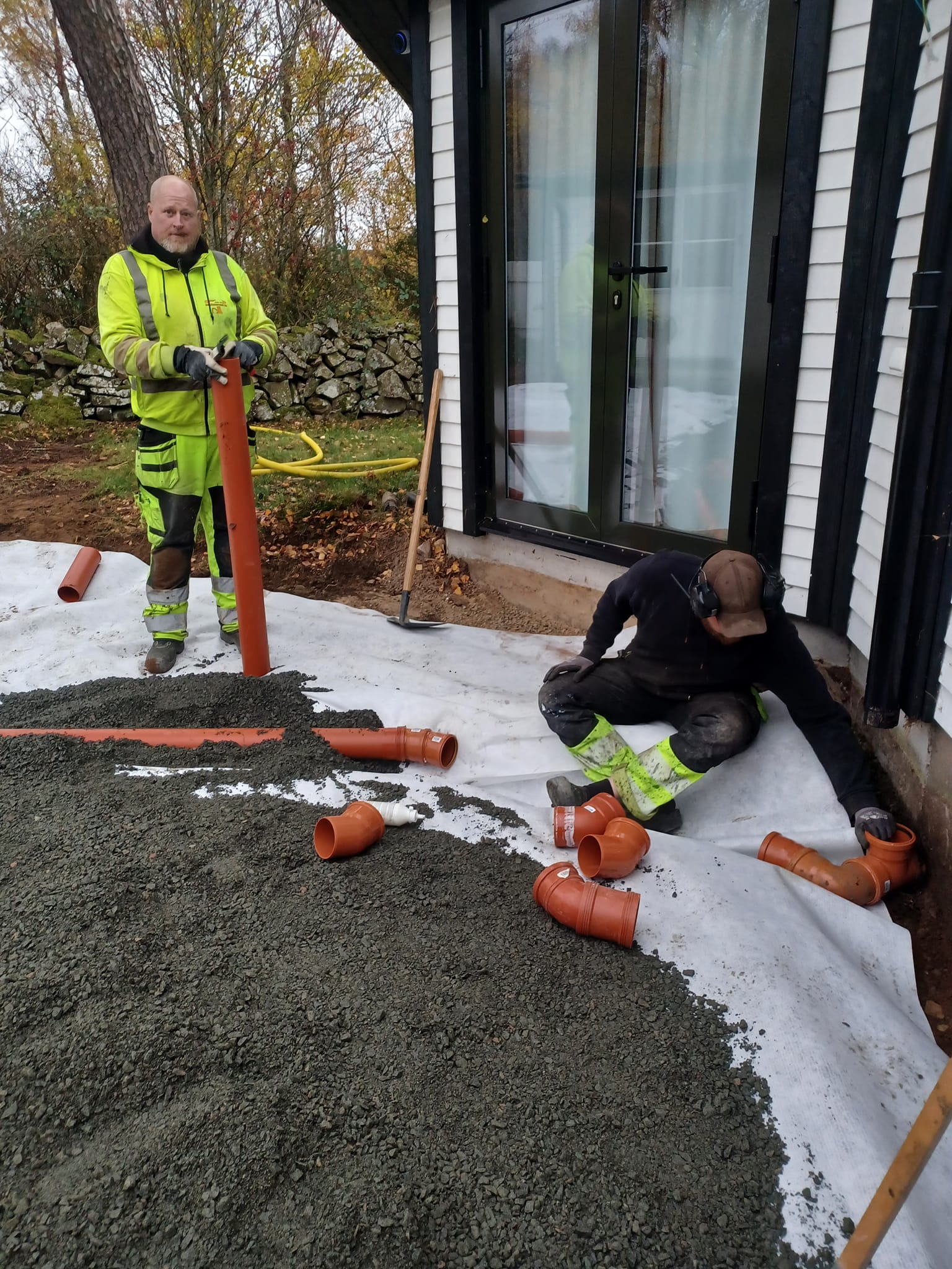 För att skapa en välfungerande trädgård krävs både rätt planering och noggrant utförd rörläggning. I detta projekt såg vi till att dränering och vattenförsörjning fungerade optimalt innan marken förbereddes för plantering och trädgårdsdesign.
